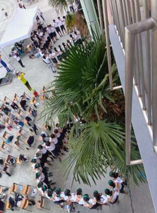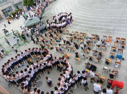 3年生、最後の運動会。そして最後の種目に向けて各クラス円陣を組み、気合を入れます