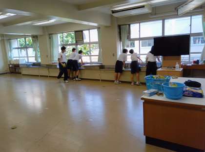 赤ちゃんとのふれあい体験の準備のために被服室を掃除してくれました。