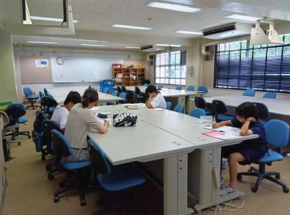 夏休みの数学補習教室で、夏休みの宿題に取り組んでいます。