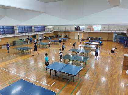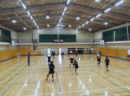 格技室では卓球部、体育館ではバレー部が頑張っています。