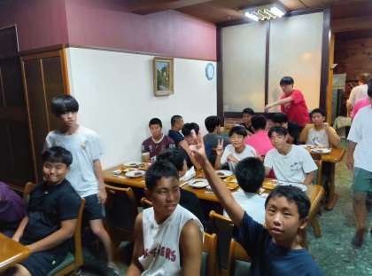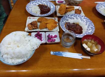 宿舎に到着して夕飯です。