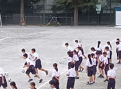 その奥で、2年生が主事さんと職場体験で掃除をしています