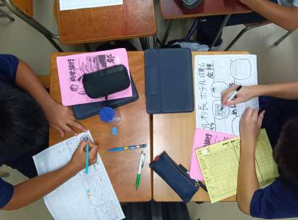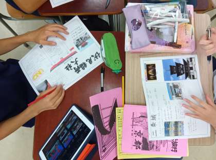 修学旅行の事後学習で個人でまとめ、班で一枚の模造紙にまとめます