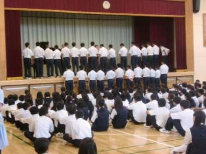 また、始業式の後には、ラグビー部と水泳部の表彰が行われました。