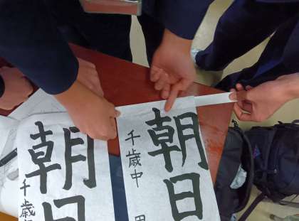冬休みの宿題だった書き初めをみんなで貼りました