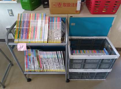 職業調べをしているので、1年生の各フロアに本がおいてあります。