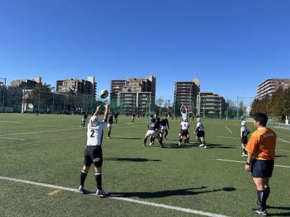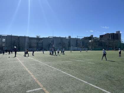 Aチームは負けはしましたが少しずつ練習の成果が出てきました。先制トライは意図して取りきれたものになりました。ただ、相手の強いランナーに受けてしまったことは修正していかなければいけません。