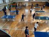 3年生、男子は卓球、女子はバレーボール。みんな楽しそうに取り組んでいます。