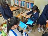 火曜日の6時間め、格技室で職業調べで作成した新聞を各クラスから選ばれた2名が発...
