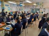 2年生は2月の校外学習に向けて、班長に、班行動についての説明がありました。