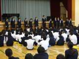 生徒が整列から司会進行まで行う学年集会が行われ、後期学級委員と学芸発表会実行委員...