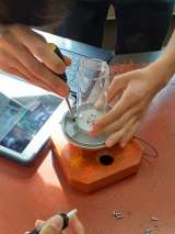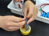 まず初めはレモン電池を作りました。オルゴールから音楽聴こえるかな?