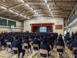 新入生オリエンテーションがありました。 説明や発表をする3年生と、それを聞く1年...
