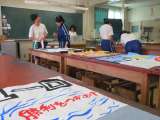 運動会を盛り上げようと各クラスで応援旗を作成しました。現在は連絡通路に掲示して...