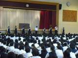29日(水)の生徒朝会の様子です。千歳中学校では月に1回生徒会主催の生徒朝会を行...