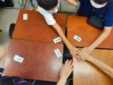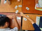 先生のコメントを聞いて、当てはまる物質のカードを取ります。