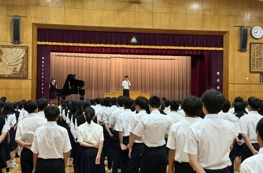 おかげさまで2学期が無事スタートしました。始業式の前に校歌練習をしていますが、指揮者の「2学期も頑張りましょう」という内容のメッセージで始まりました。