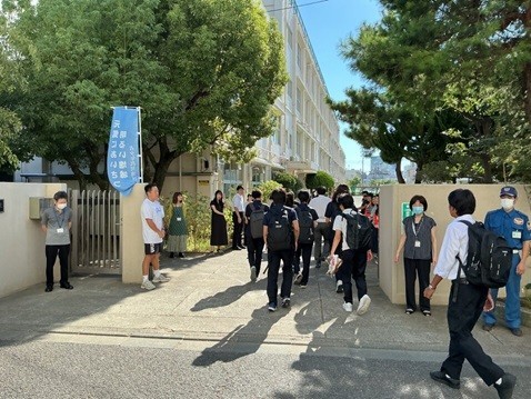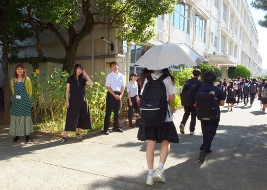 今朝は、PTAのご担当の皆さんと教職員とで生徒たちをあいさつで迎えました。生徒たち主催のあいさつ運動とは別に、学期初めに行っています。日傘が目立つほどの酷暑の朝でしたが、生徒たちは少し照れ臭そうに、でも笑顔で元気にあいさつを交わしていました。