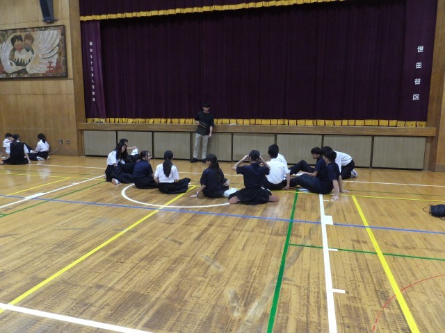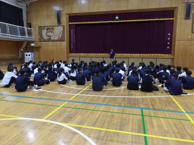 9月15日(月)から行われる河口湖移動教室の取り組みについて説明があり、後半は体育館内で分かれて宿舎での係会が行われました。