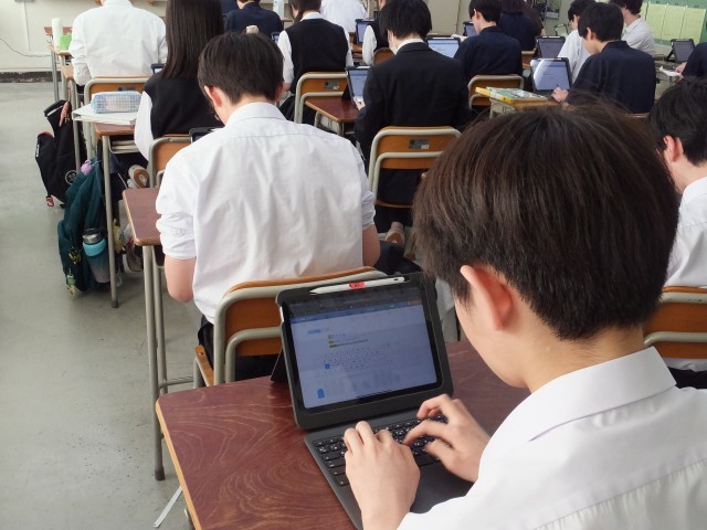 さすが3年生になると、ほとんどの生徒がブラインドタッチで非常に素早く入力しており、その習熟度に感心しました。