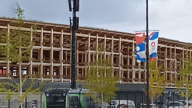大阪万博駐車場到着。海のすぐ近くで風が気持ちいいです。