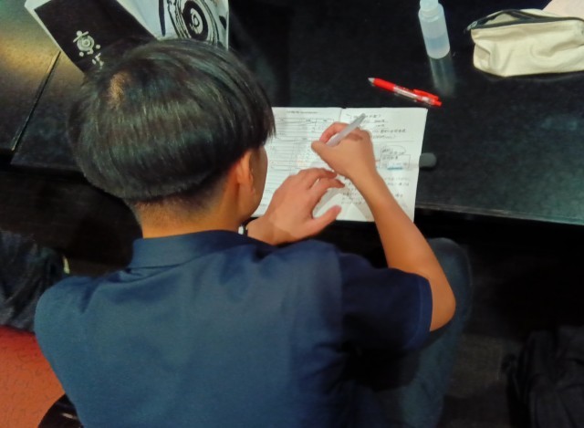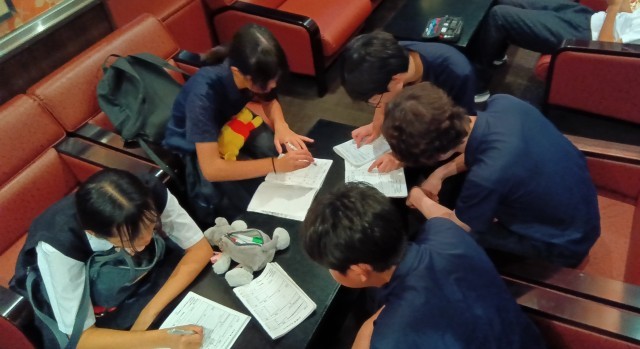 班行動のゴールの後、会計をまとめています。