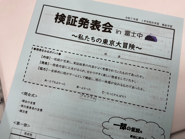 1学年「検証発表会」in富士中~私たちの東京大冒険~