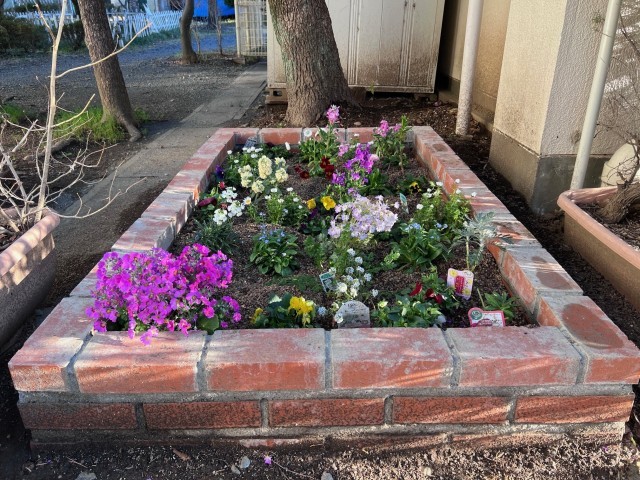 花壇の完成 主事さんたちお疲れ様でした