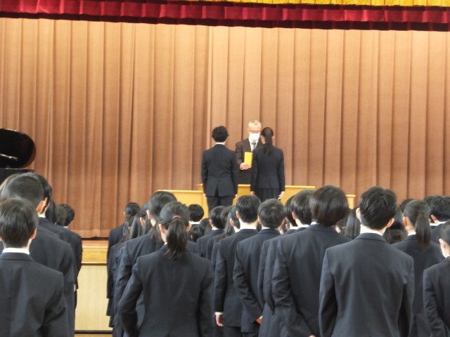 式の後には、この春に異動・退職される先生方の紹介があり、生徒たちからは驚きの声が上がっていました。