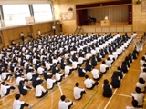 9月1日(月)二学期の始業式が行われました。どの学年も、富士中生らしく立派な態度で静かに話を聞くことができました。式に続いて、部活動や検定等で立派な成果をおさめた生徒の表彰が行われました。教室では、漢字、計算、英単語のコンクールが行われ、夏休みの学習の成果を試しました。給食の時間には、久しぶりに会った友達と夏休み中の出来事などを話しながら、楽しいひとときを過ごしていました。