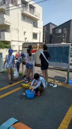 本格的な夏の暑さの中、町の美化活動に取り組みました。汗をかきながら、頑張っていました。