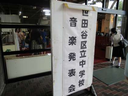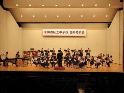 8月25日(金)、世田谷区立中学校音楽発表会が、区民会館で行われました。吹奏楽部は、この日を目標に夏休み中にずっと練習を重ね、ステージでは「SING,SING、SING」「MISSION IMPOSSIBLE」の2曲を堂々と演奏することができました。