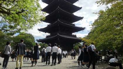 宿舎の方々に見送られ、旅館を出発しました。バスで平等院、伏見稲荷、東寺を回りました。修学旅行最終日は快晴です。たくさんの思い出を胸に、予定どおり、東京に向かいます。