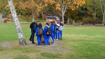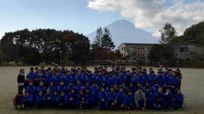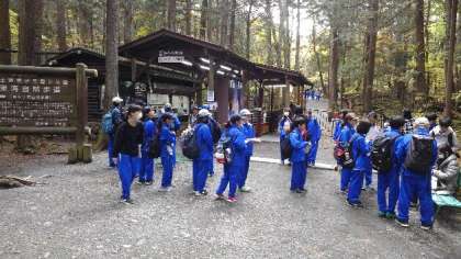 学園で富士山をバックに学年写真を撮り、西湖に向かいました。ここからは班行動です。オリエンテーリングコースを地図を頼りに歩きました。13時前にはすべての班が紅葉台に到着予定です。