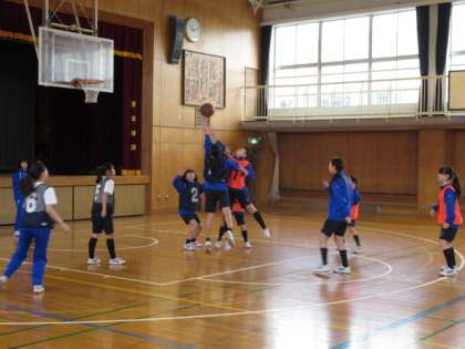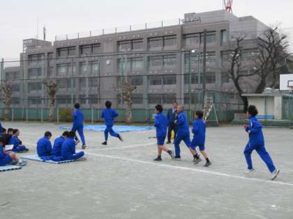 体育の授業では、男子は1500m走、女子はバスケットボールに取り組んでいます。週に3回の授業でしっかりと運動することは、寒い季節の風邪の予防にもつながります。
