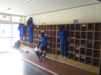 クリスマスが近づき、正面玄関には華道部の生徒が飾りをしてくれました。12月22日(金)は、午前中は各学年とも1時間ずつ学年集会を開き、5校時は全校一斉に大掃除でした。長い2学期の登校も、あと1日です。