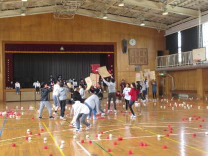 春休みの1日目は、恒例の代沢地区文化・スポーツ交流会が行われました。体育館では、生徒会役員が企画したゲームに興じ、調理部隊は調理室で焼きそばやじゃがバター作りをしました。昼にはできたての料理を味わい、楽しさと美味しさで笑顔いっぱいの1日になりました。協力いただきました地区委員の皆様、保護者の皆様、どうもありがとうございました。