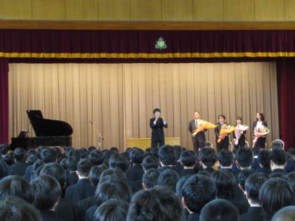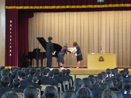 4月27日(金)は平成30年度の離任式でした。3月末で富士中に別れを告げた職員との1か月ぶりの再会の日です。印象的な出来事や思い出を伝え、言葉、花束、校歌の合唱で感謝の気持ちを表しました。