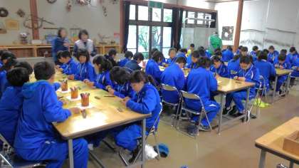 午後はフィールドセンターに行き、班別に溶岩樹型を巡るガイドウォークとバードコールを作るクラフト体験に取り組みました。バードコールはオリジナルのおみやげです。