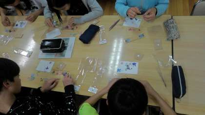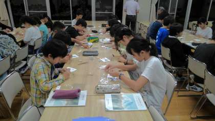 自分たちで作ったうどんは夕食でおいしく食べました。きしめん風あり、パスタ風ありで楽しいものでした。食後は押し花を使った定規作りです。東京へのおみやげがまたひとつ増えました。