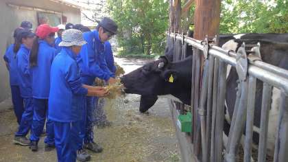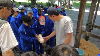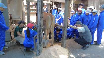 最終日の午前中はクラスごとに3つの牧場に分かれ、酪農体験をしました。乳しぼり、餌やり、バター作りなどをしました。