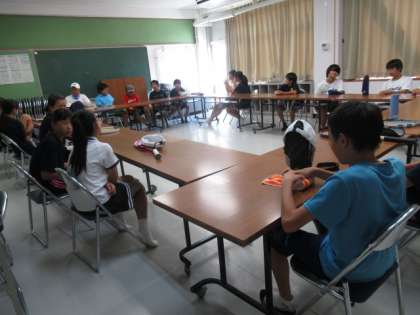 夏休み第1週は、どの学年も学習教室を行っています。国数英の3教科で、主に1学期の復習に取り組んでいます。部活動では、校庭使用の運動部は集会室を、体育館使用の運動部は美術室を開放し、休憩時間はクーラーの効いた部屋で休息をとれるようにしました。