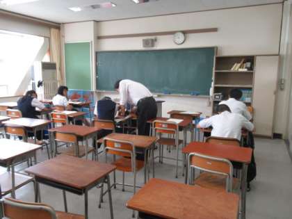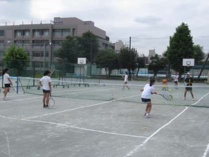学習教室は、やはり3年生の参加が一番多く、みんな真剣に学習しています。今日(7月26日)は、茶道部の活動日でした。6名の部員がお茶の先生から指導を受けていました。校庭はテニス部の練習日です。女子は3日後の、私立高校主催の試合に向けて、練習をしていました。