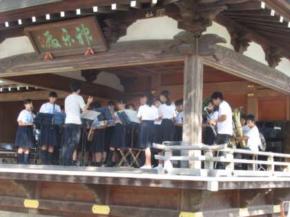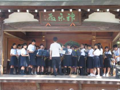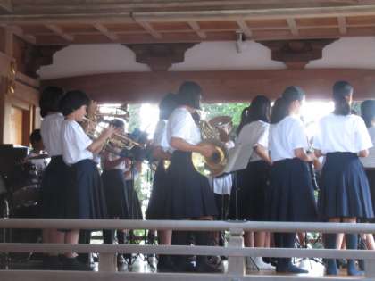 9月8日(土)は、鎮守の杜コンサートがありました。本校の吹奏楽部は、第1回のコンサートからずっと参加しています。今年は部員全員が70周年記念Tシャツを着て、