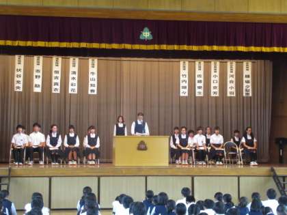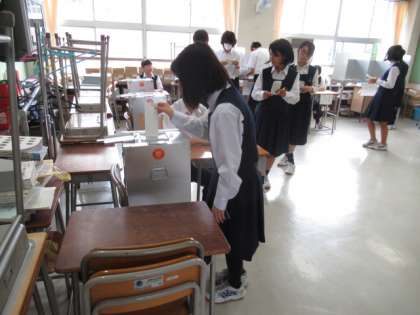 新しい生徒会役員を決める時期になりました。9月14日(金)の5校時には立会演説会があり、10名の候補者と10名の応援演説者が発表しました。発表が終わると、会場から自然と拍手が生まれ、、これは昨年度にはなかったことです。3年生は、公民の学習として、区から借りた本物の投票記入台と投票箱を利用し、選挙体験をしました。