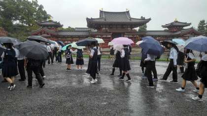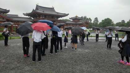 関西は雨です。京都駅からバスで宇治に向かい、昼食後は平等院を見学しました。
