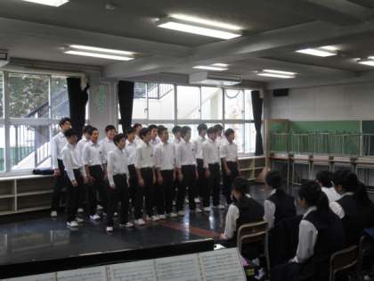 土曜日の合唱コンクール当日まで、あと3日になりました。体育館でのリハーサルは本番同様に行い、音楽室での練習も熱を帯びています。生徒の気持ちも盛り上がりを感じます。70周年記念合唱コンクールの大成功を祈ります。