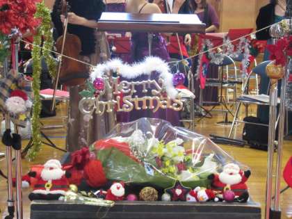 丸の内交響楽団を招いての、恒例のクリスマスコンサートが15日(土)に本校体育館でありました。吹奏楽部も参加し、2曲をコラボレーションしました。また、本校の生徒