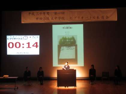 区作品展が世田谷美術館で開かれ、美術、技術・家庭、国語(書写)の授業で取り組んだ代表作品が展示されました。どれも個性あふれる力作です。1月19日(土)は、本区の第1回ビブリオバトル本選会が行われ、代表生徒が堂々と発表をしました。言葉を丁寧に使ったよい発表でした。