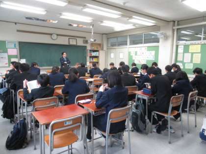 2月9日(土)に、道徳授業地区公開講座を行いました。1年生は「社会連帯の自覚」、2年生は「社会参画・公共の精神」、3年生は「公正で責任ある働き方」についての授業を公開しました。公開授業後は、意見交換会を行い、4月から始まる「特別の教科道徳」についての説明も行いました。